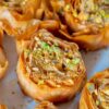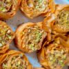 A traditional buttery and crisp phyllo dough filled with either nuts or rich sweet cheese center.